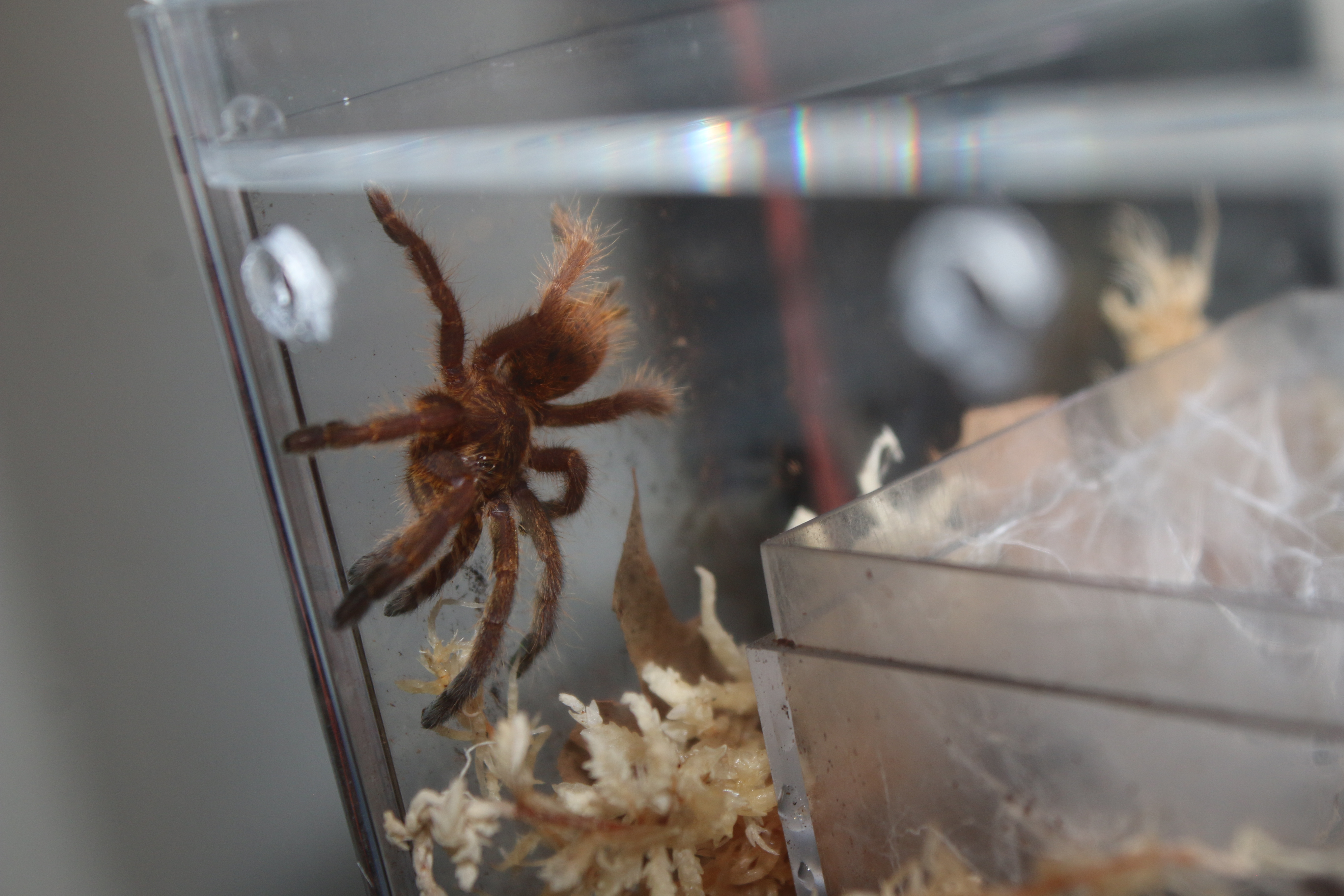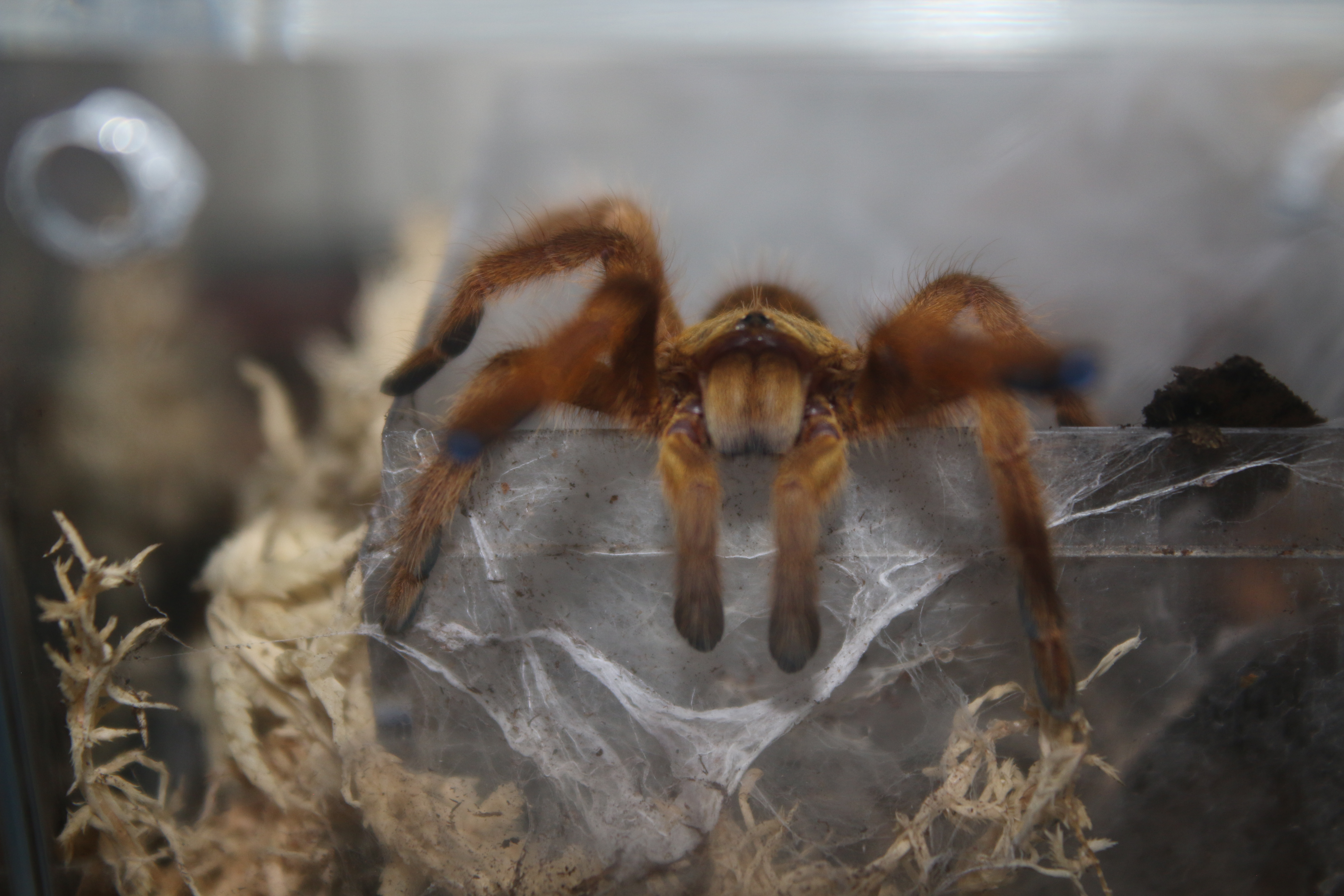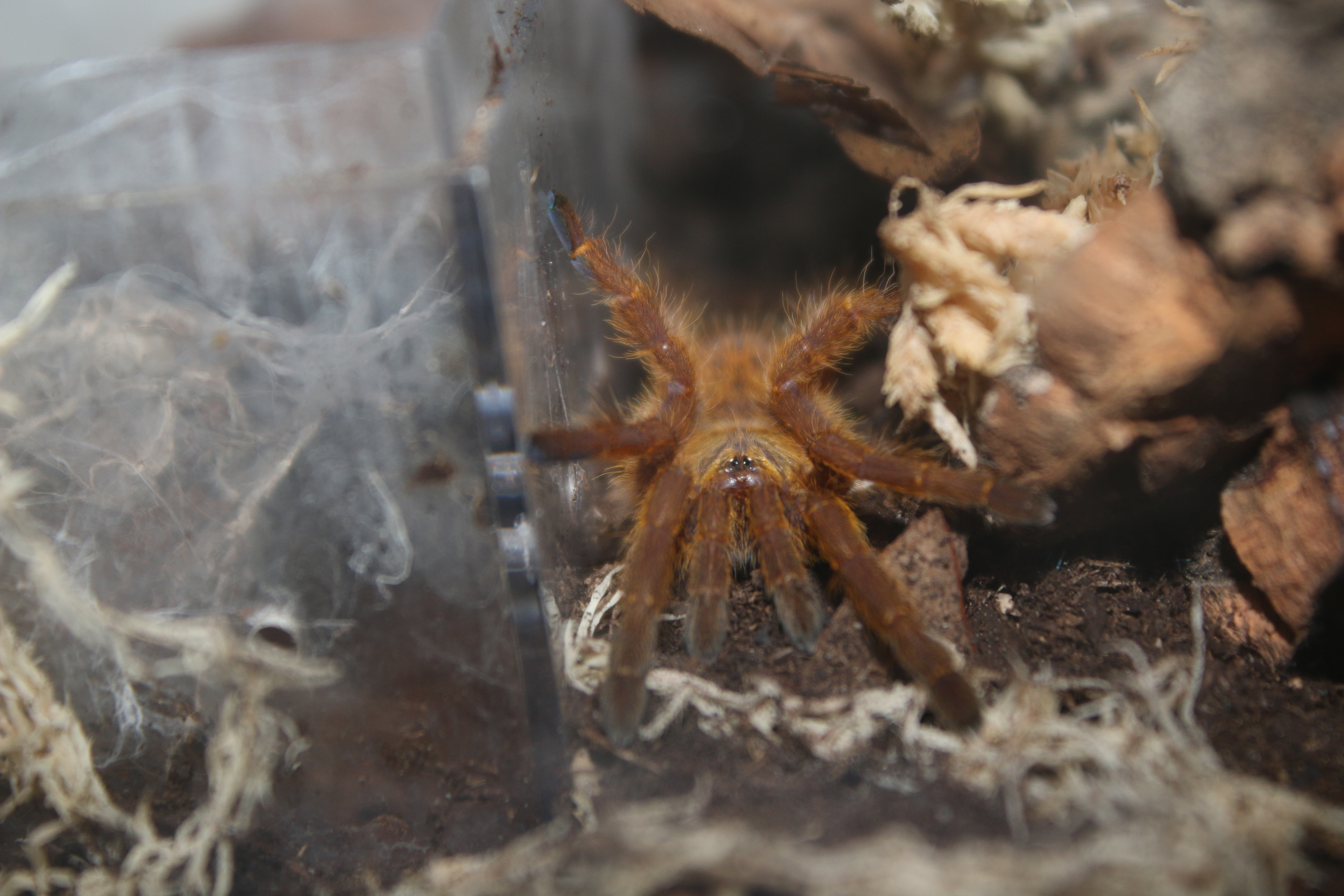 Chester is a young Orange Baboon Tarantula (Pterinochilus murinus). Unsexed so far. I picked them up from an expo on May 18, 2024.