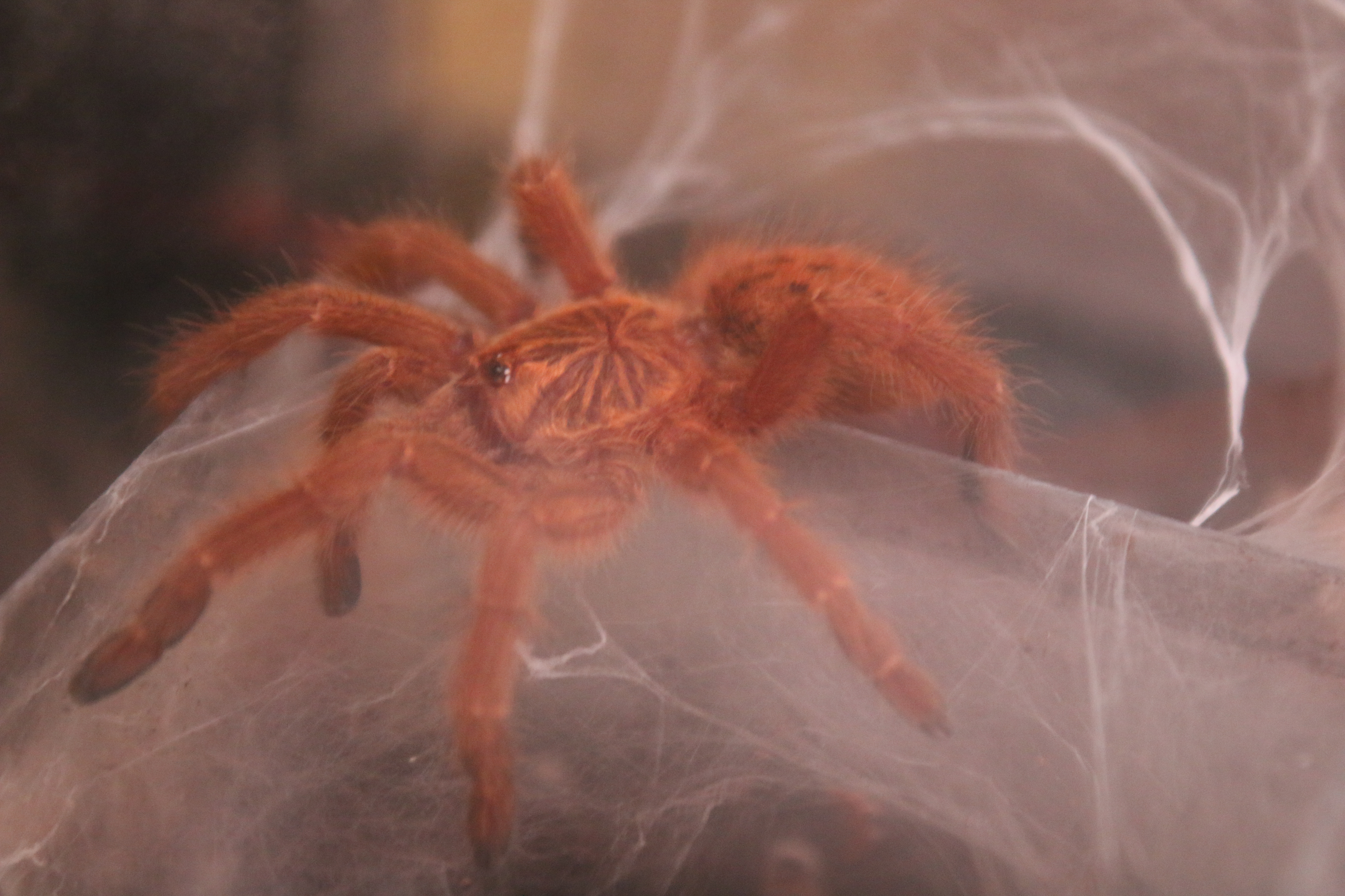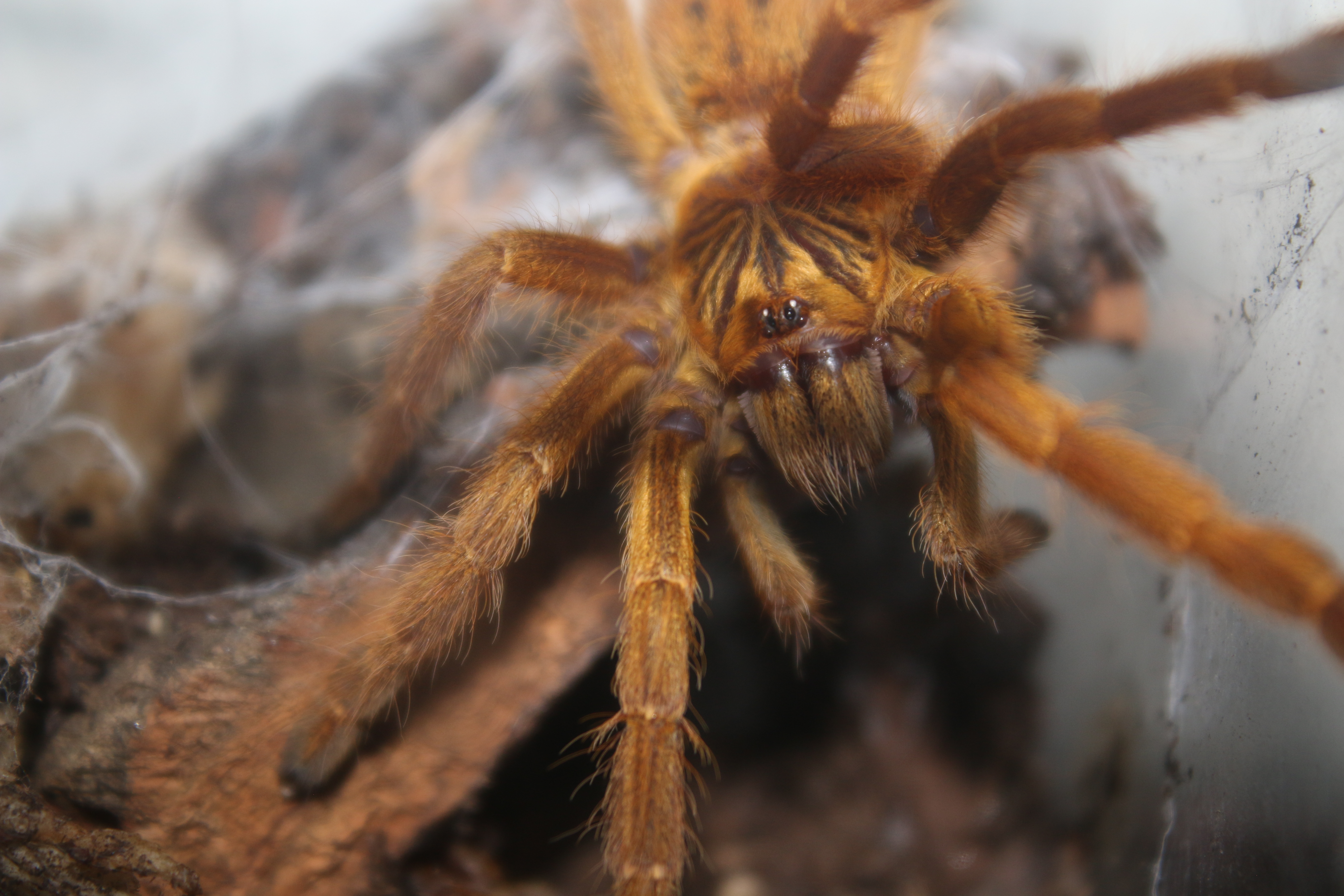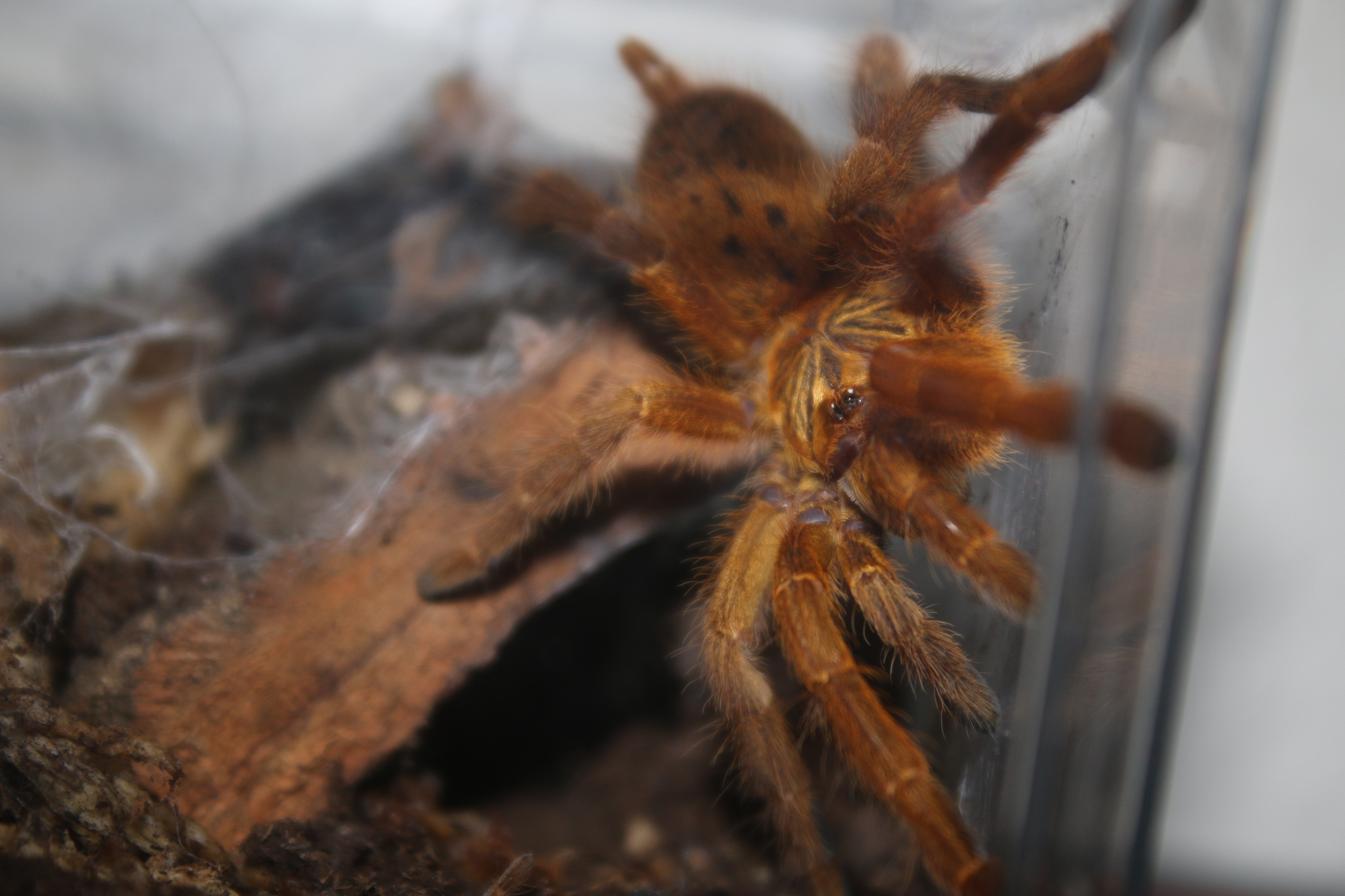 Chester is a young Orange Baboon Tarantula (Pterinochilus murinus). Unsexed so far. I picked them up from an expo on May 18, 2024.