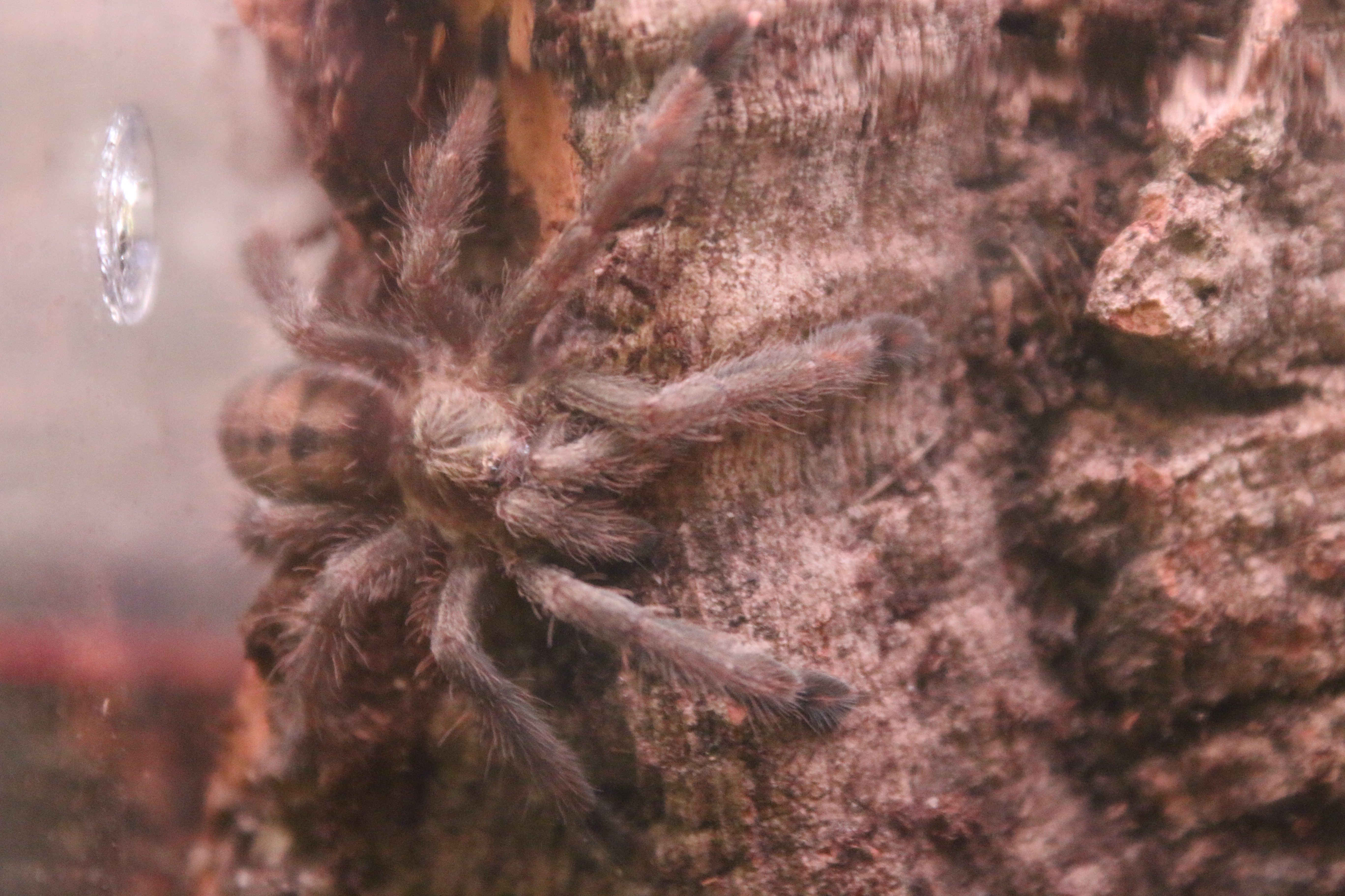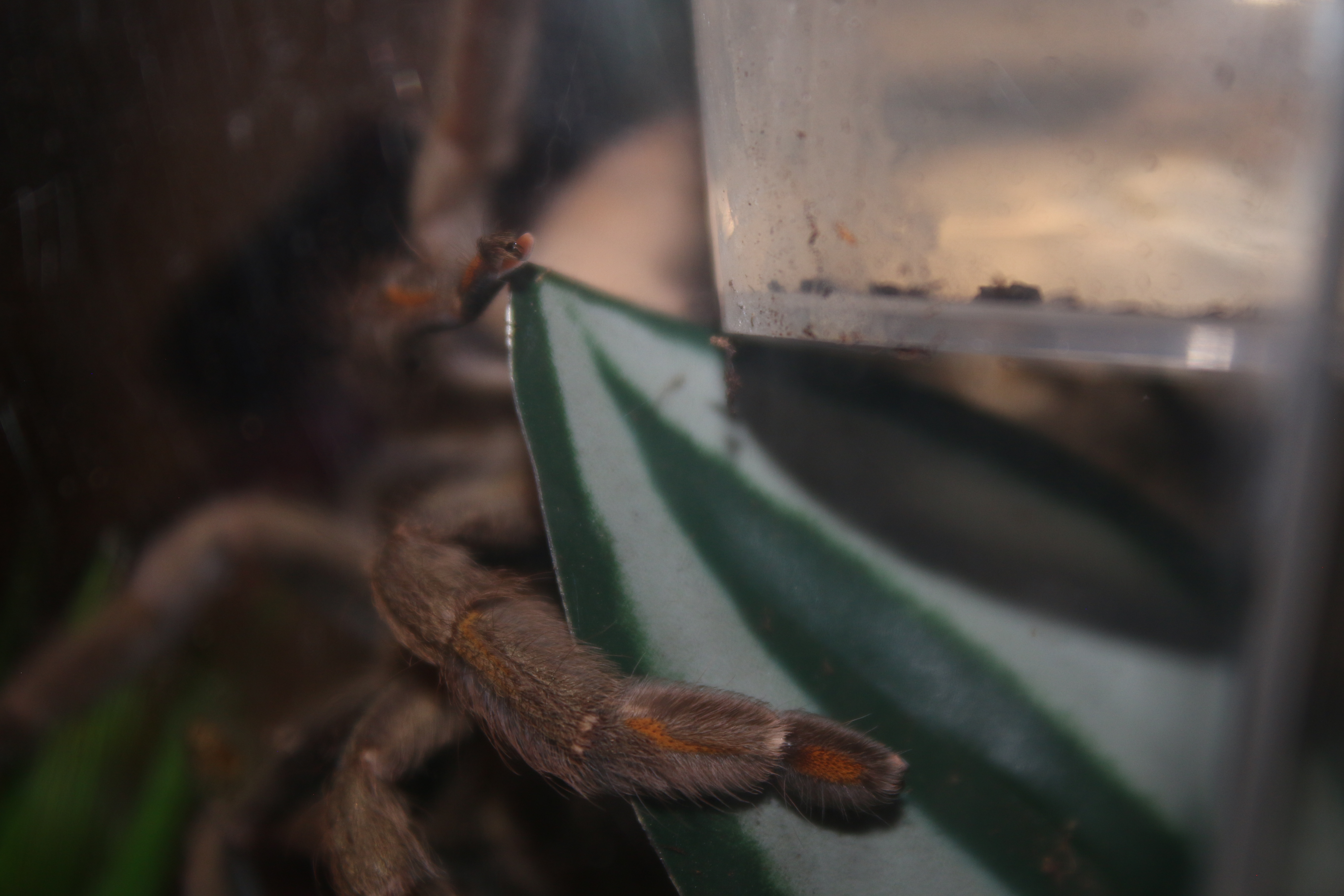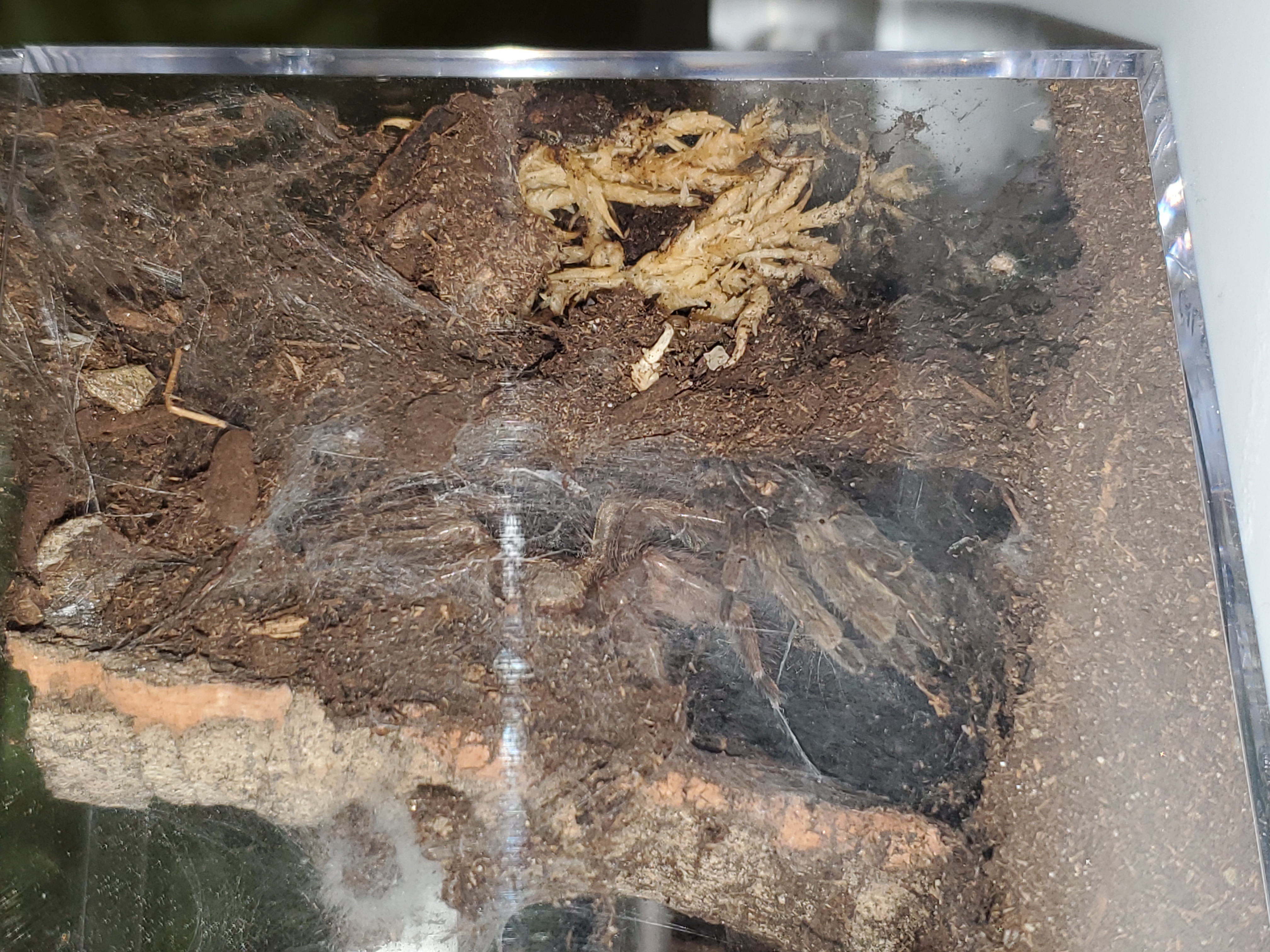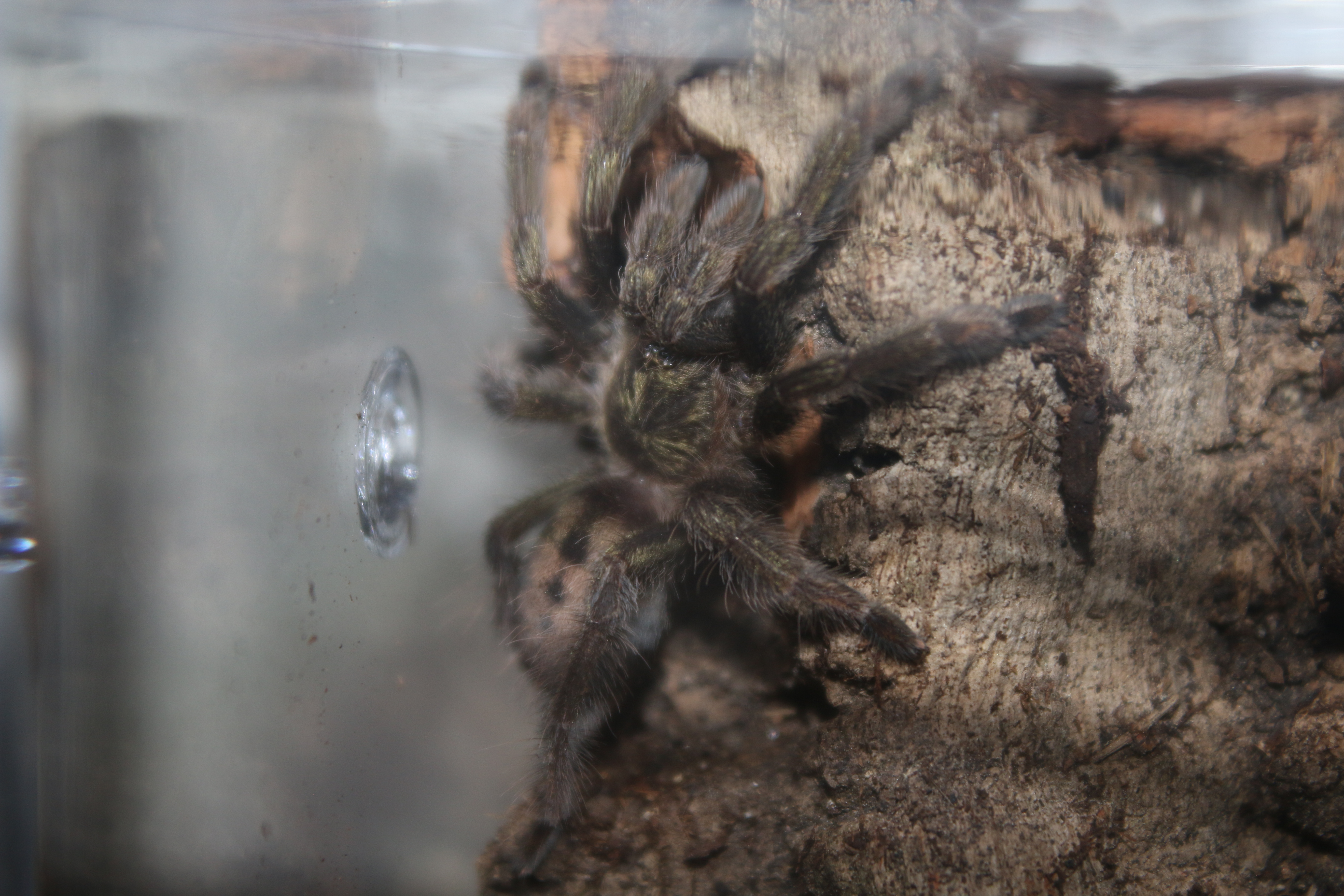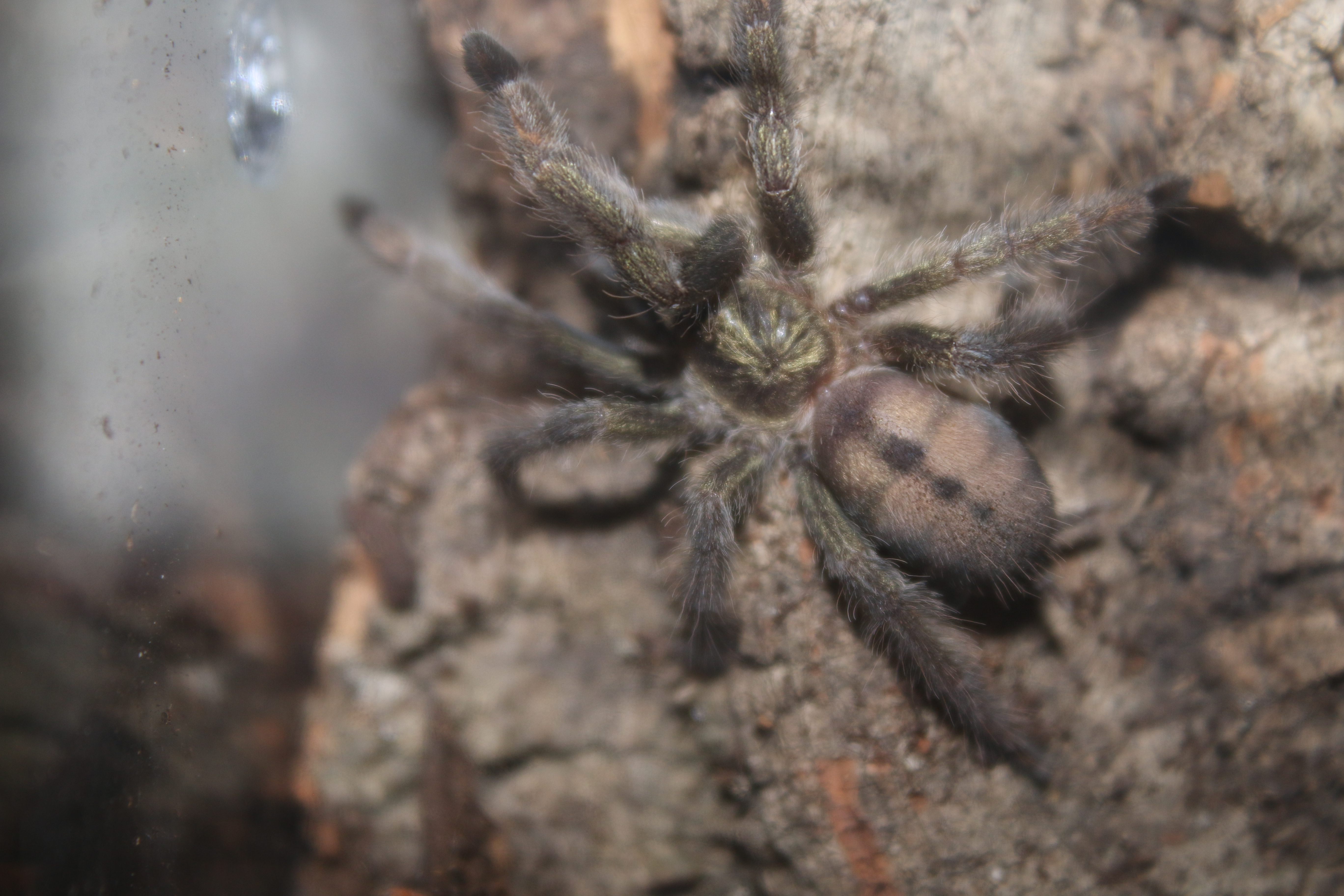 Dog is a young Trinidad Chevron tarantula (Psalmopoeus cambridgei). Unsexed so far. I picked them up from an expo on May 18, 2024.