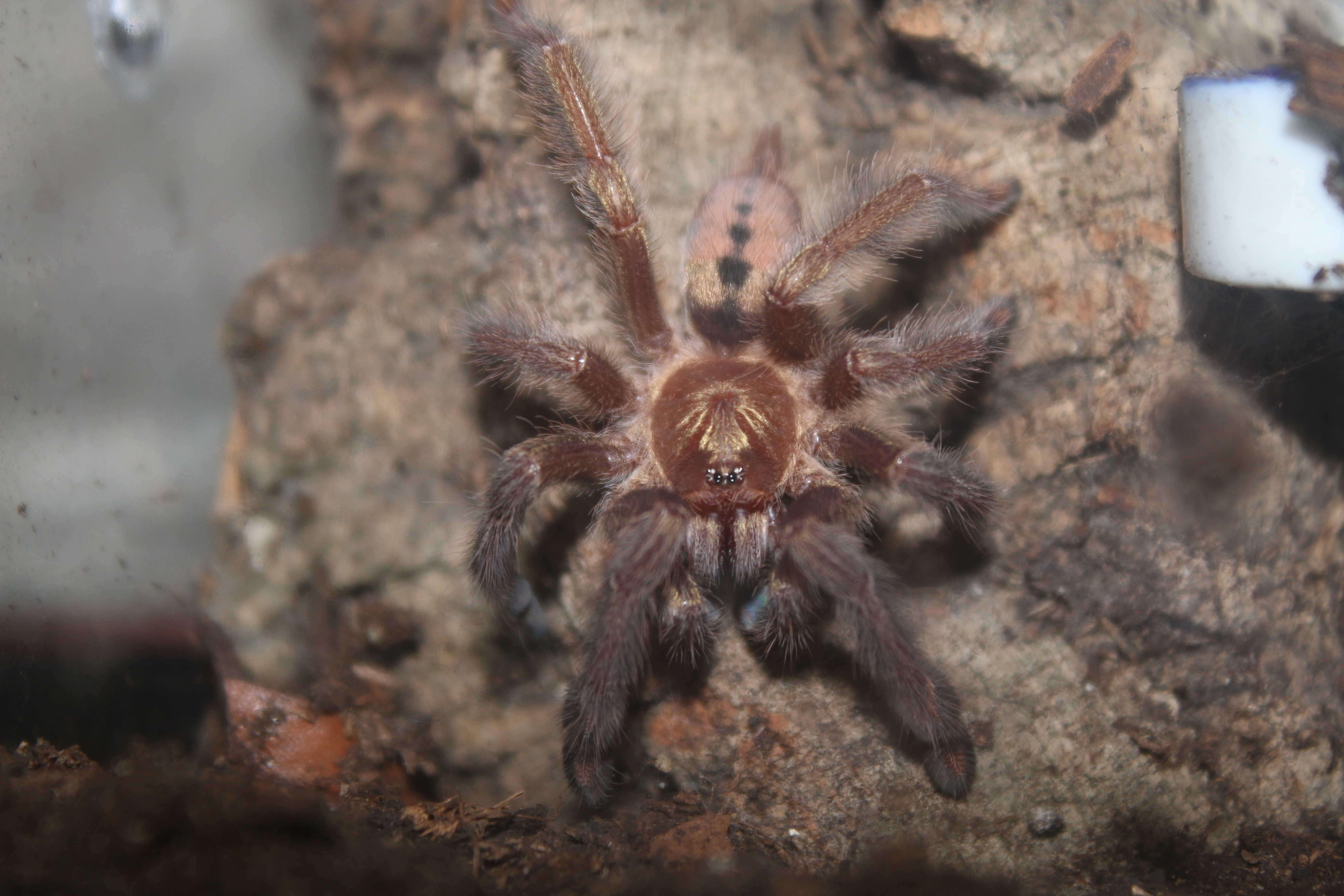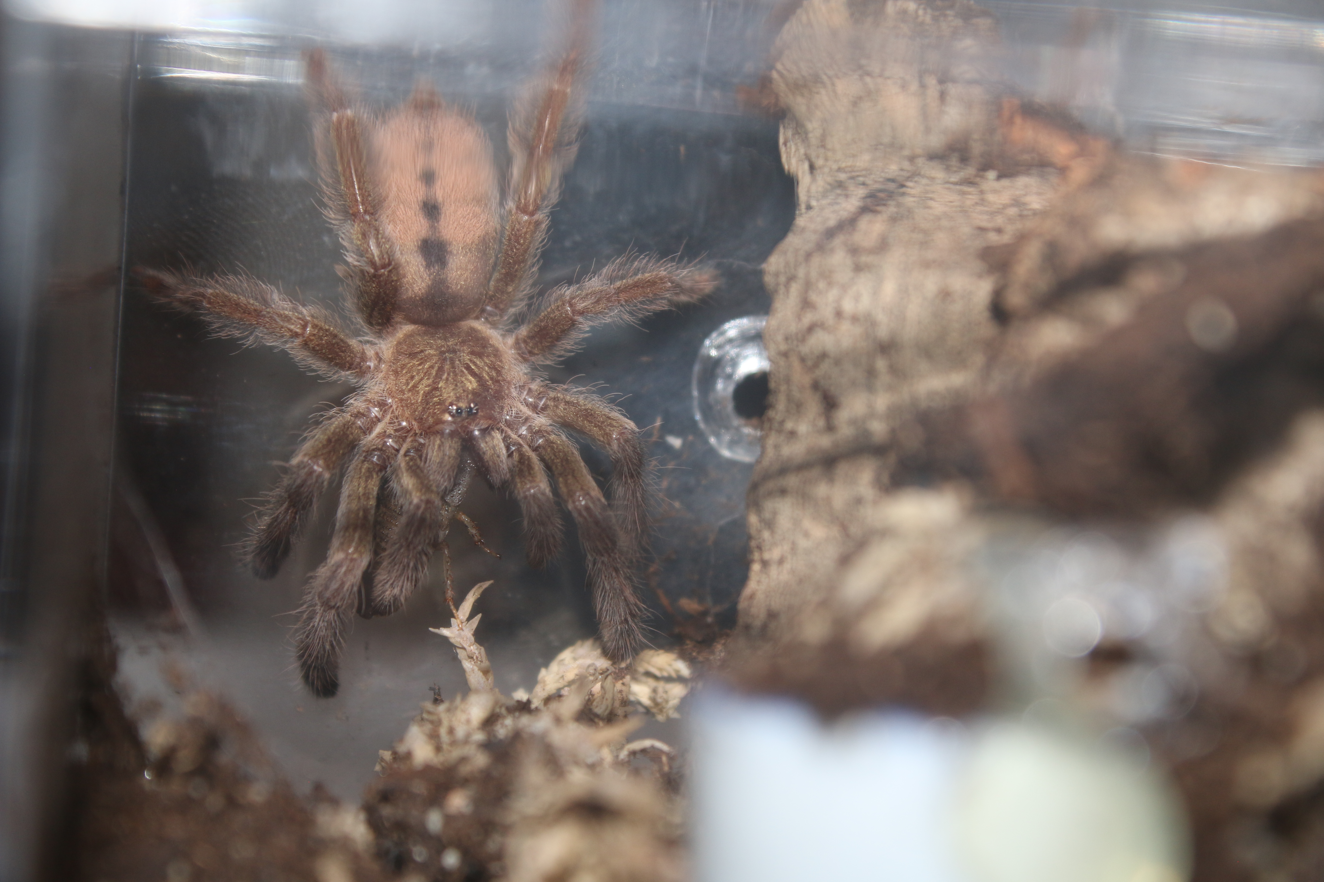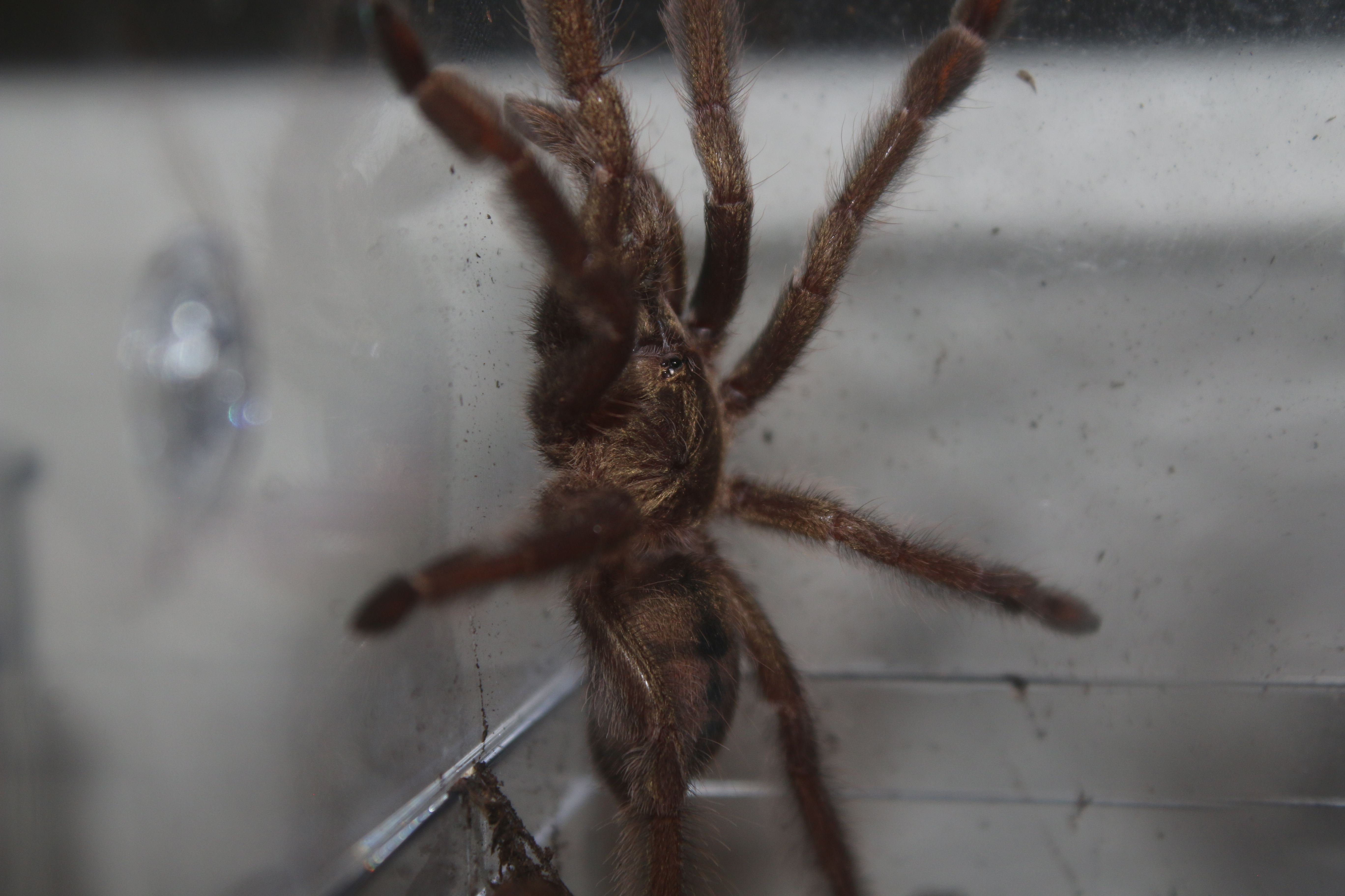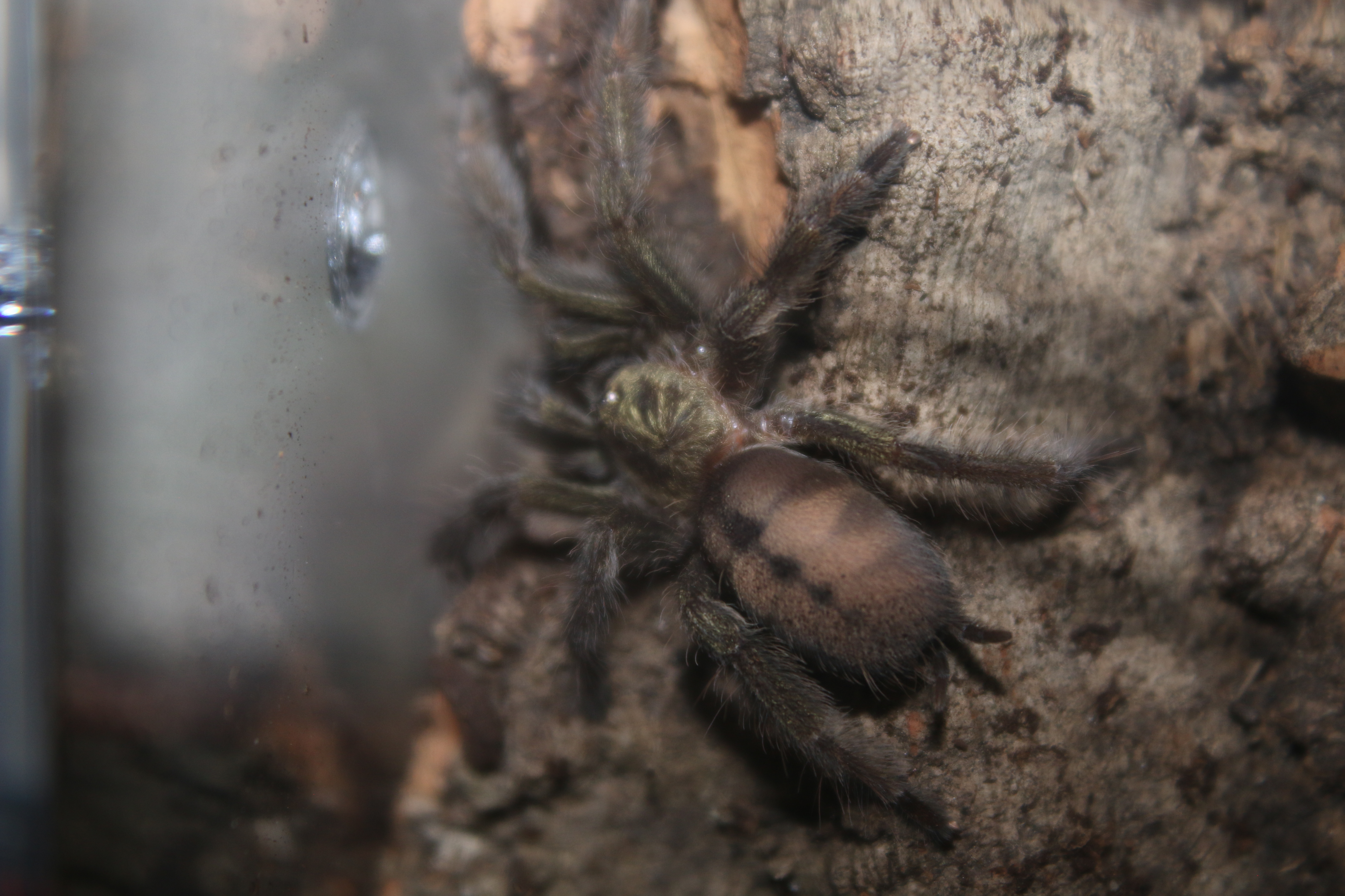 Dog is a young Trinidad Chevron tarantula (Psalmopoeus cambridgei). Unsexed so far. I picked them up from an expo on May 18, 2024.