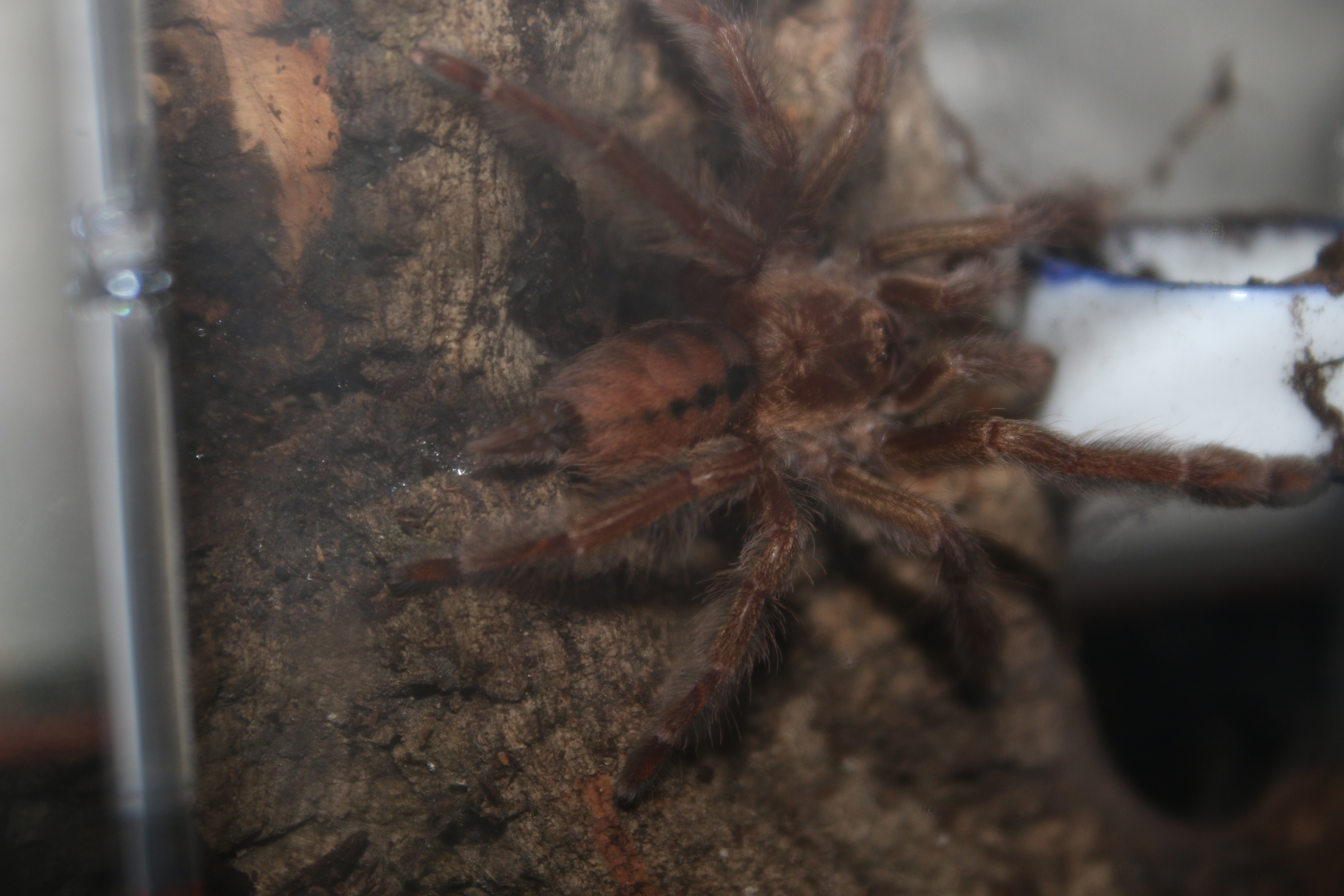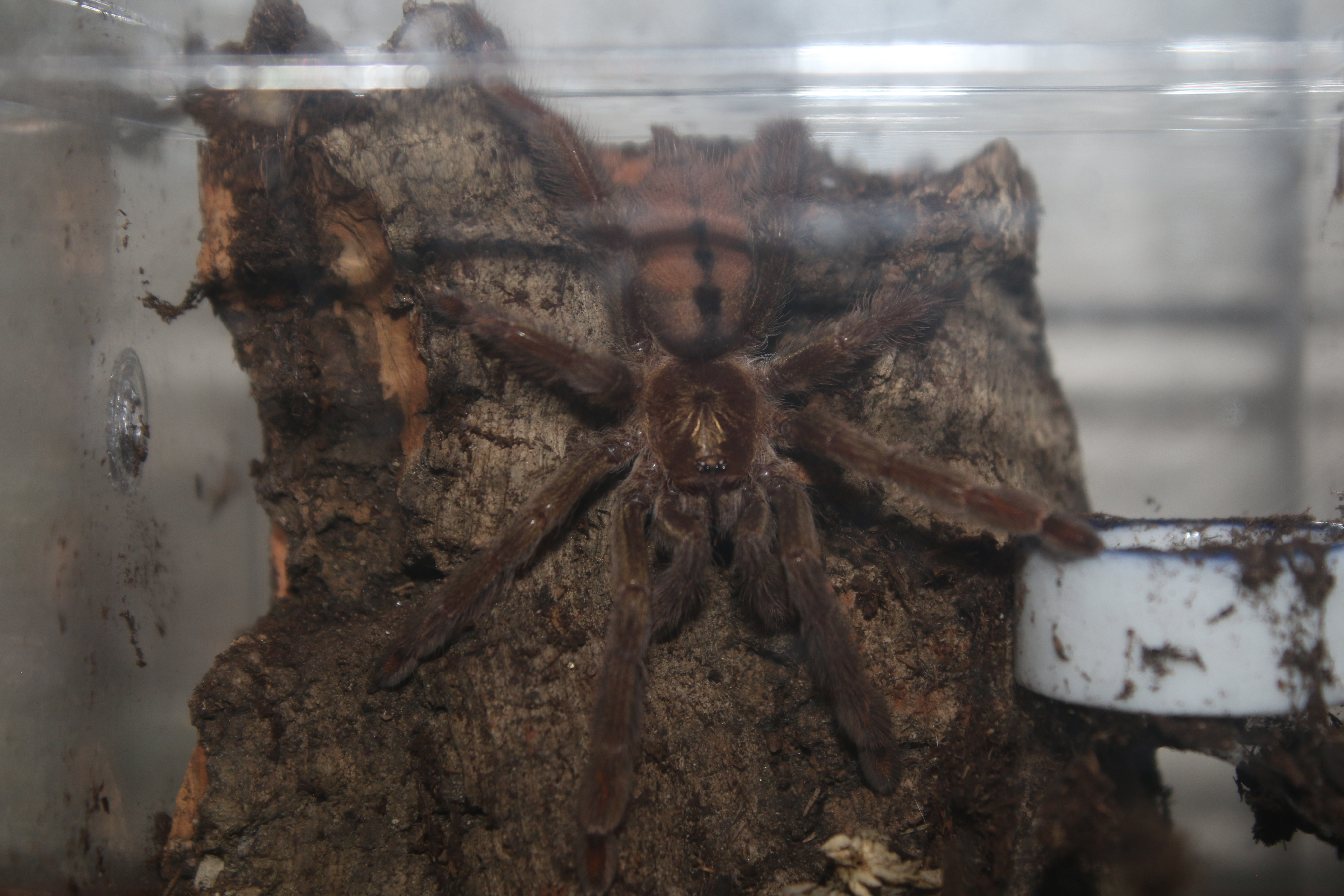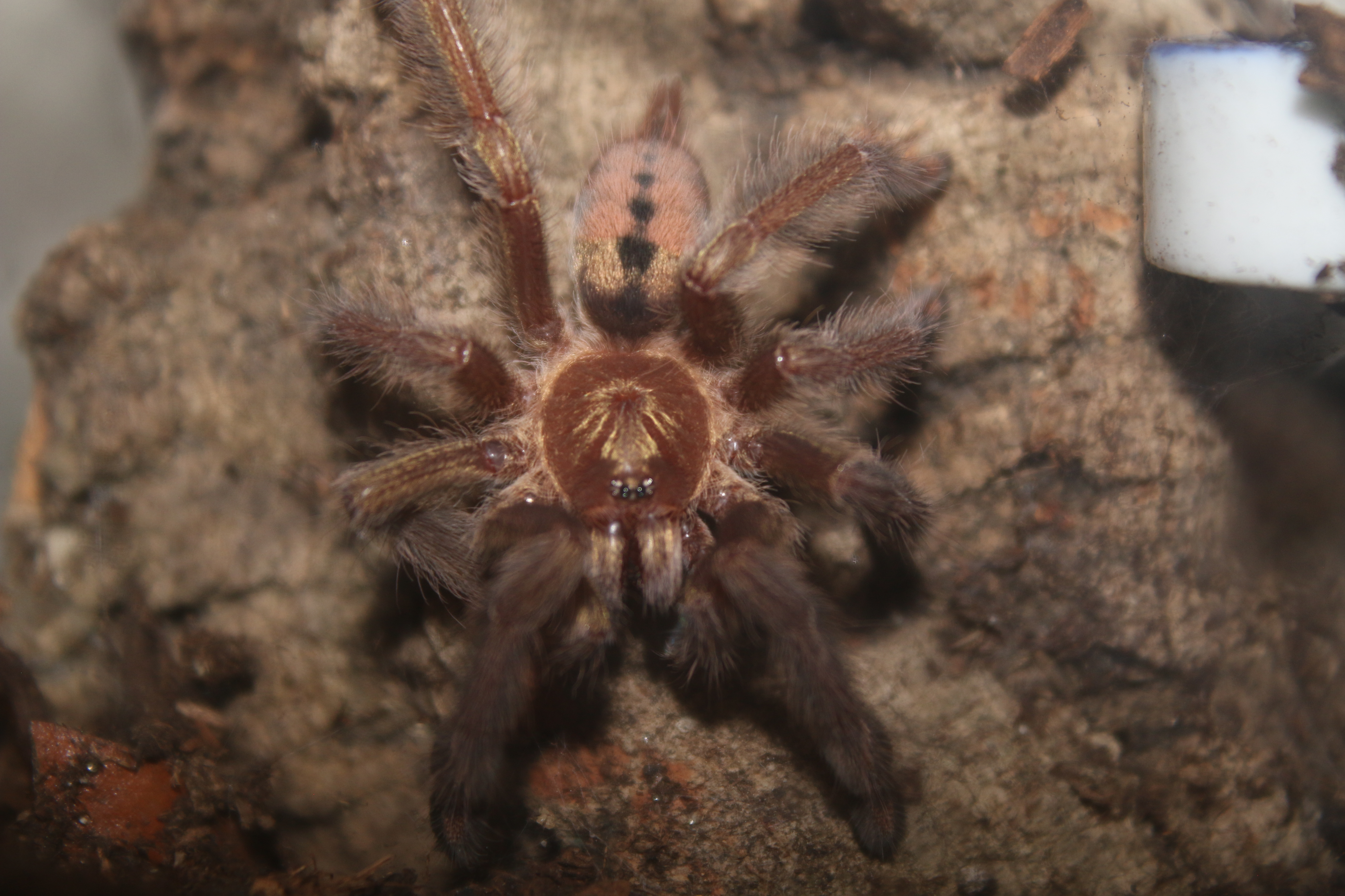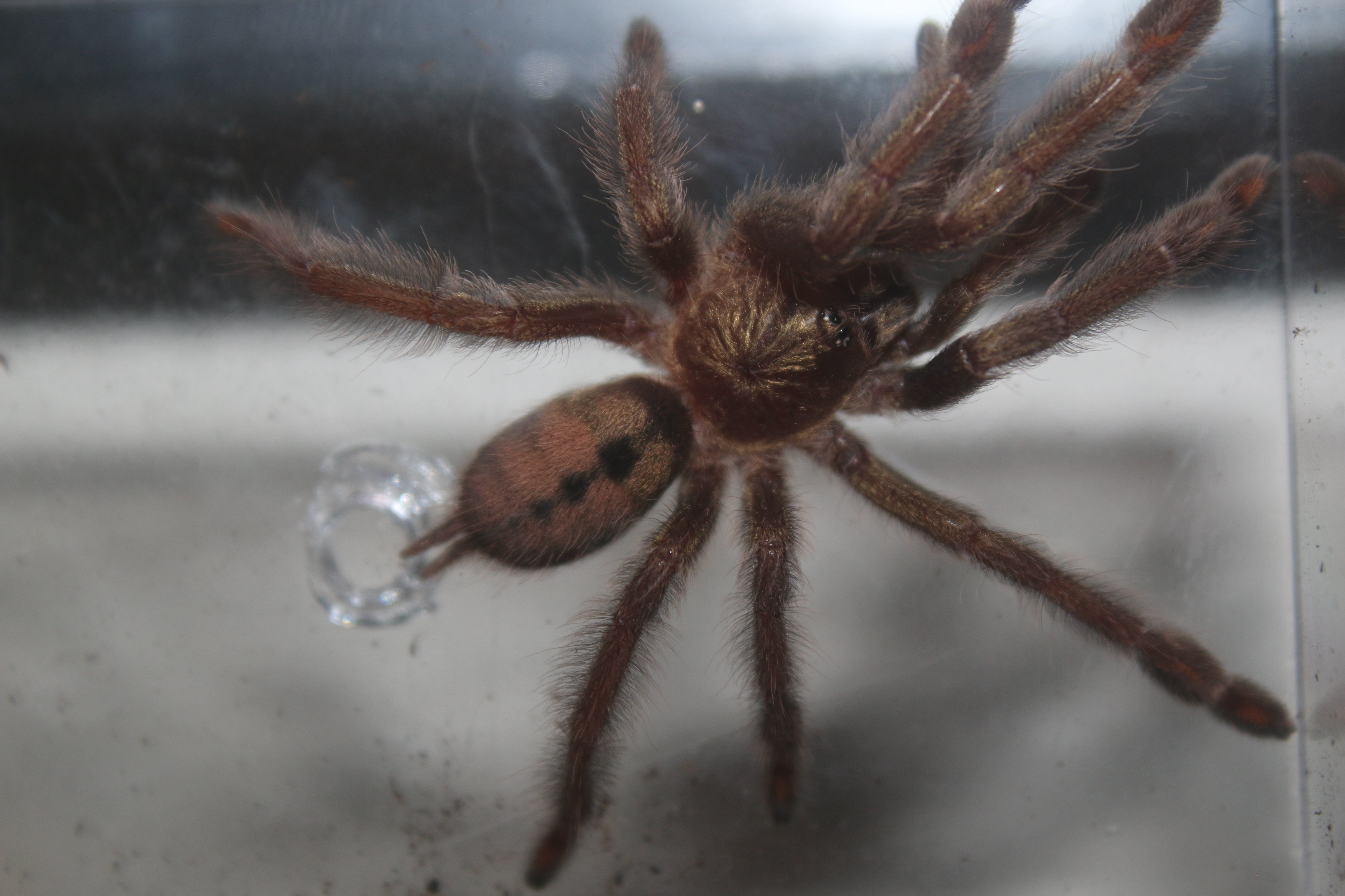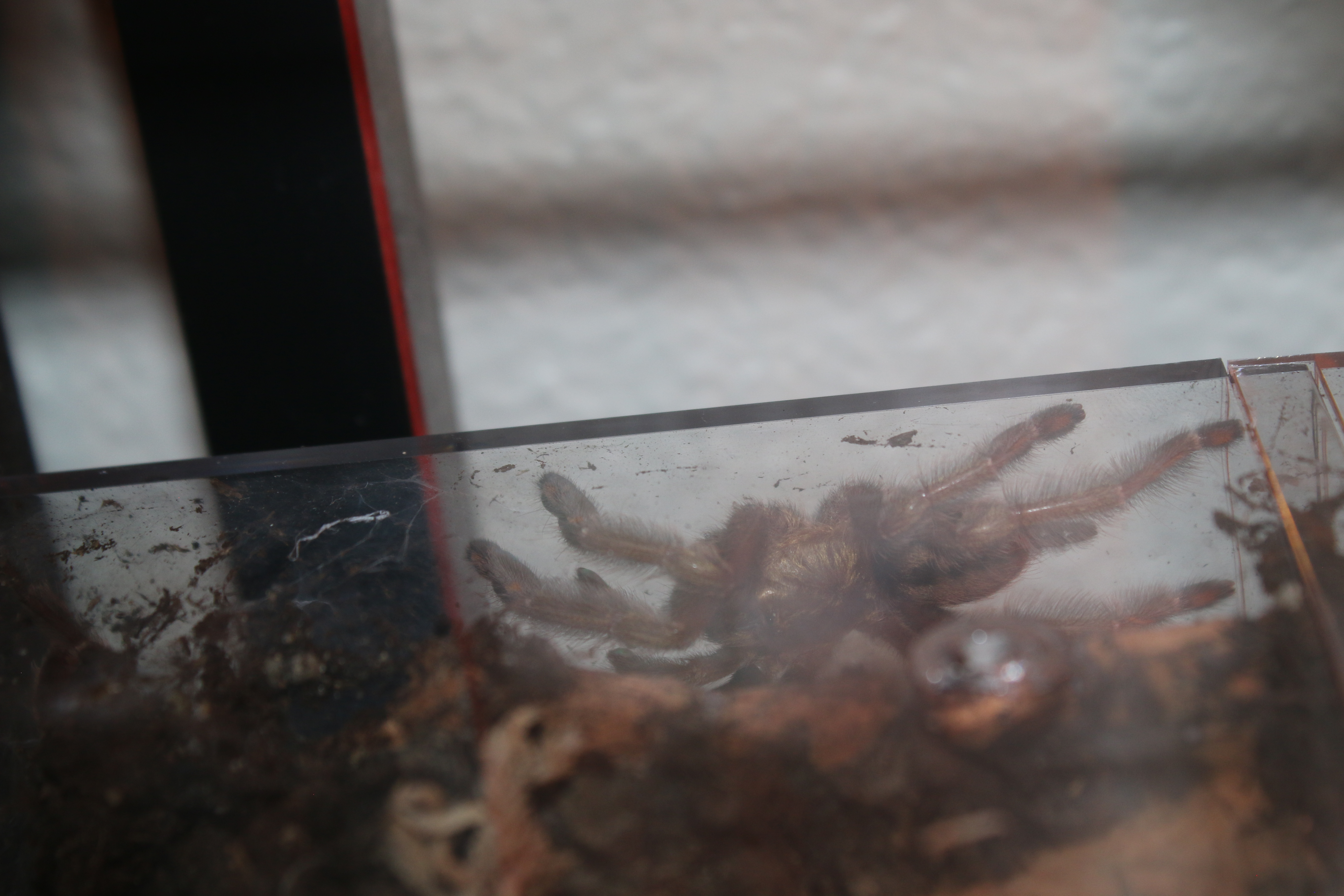 Dog is a young Trinidad Chevron tarantula (Psalmopoeus cambridgei). Unsexed so far. I picked them up from an expo on May 18, 2024.