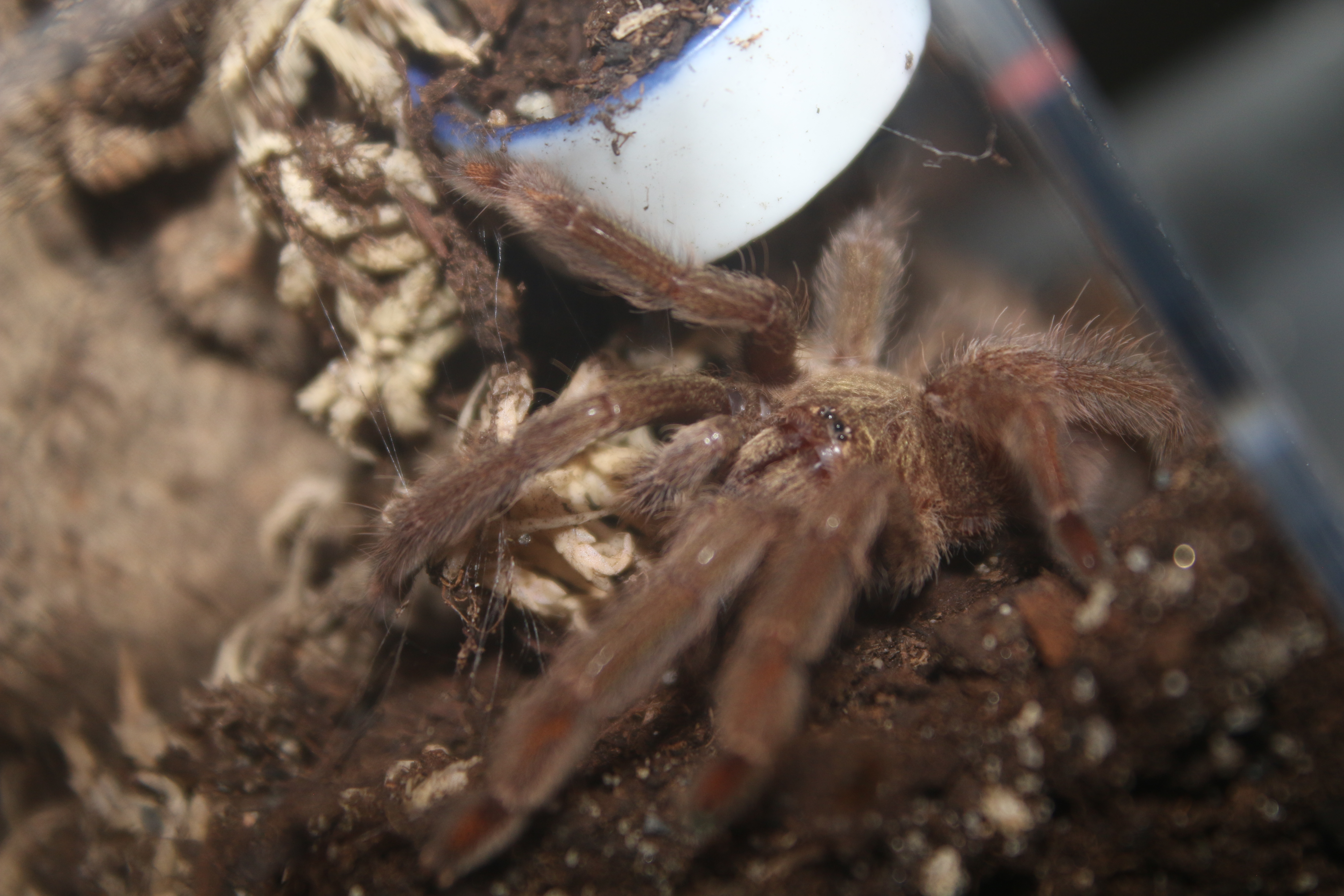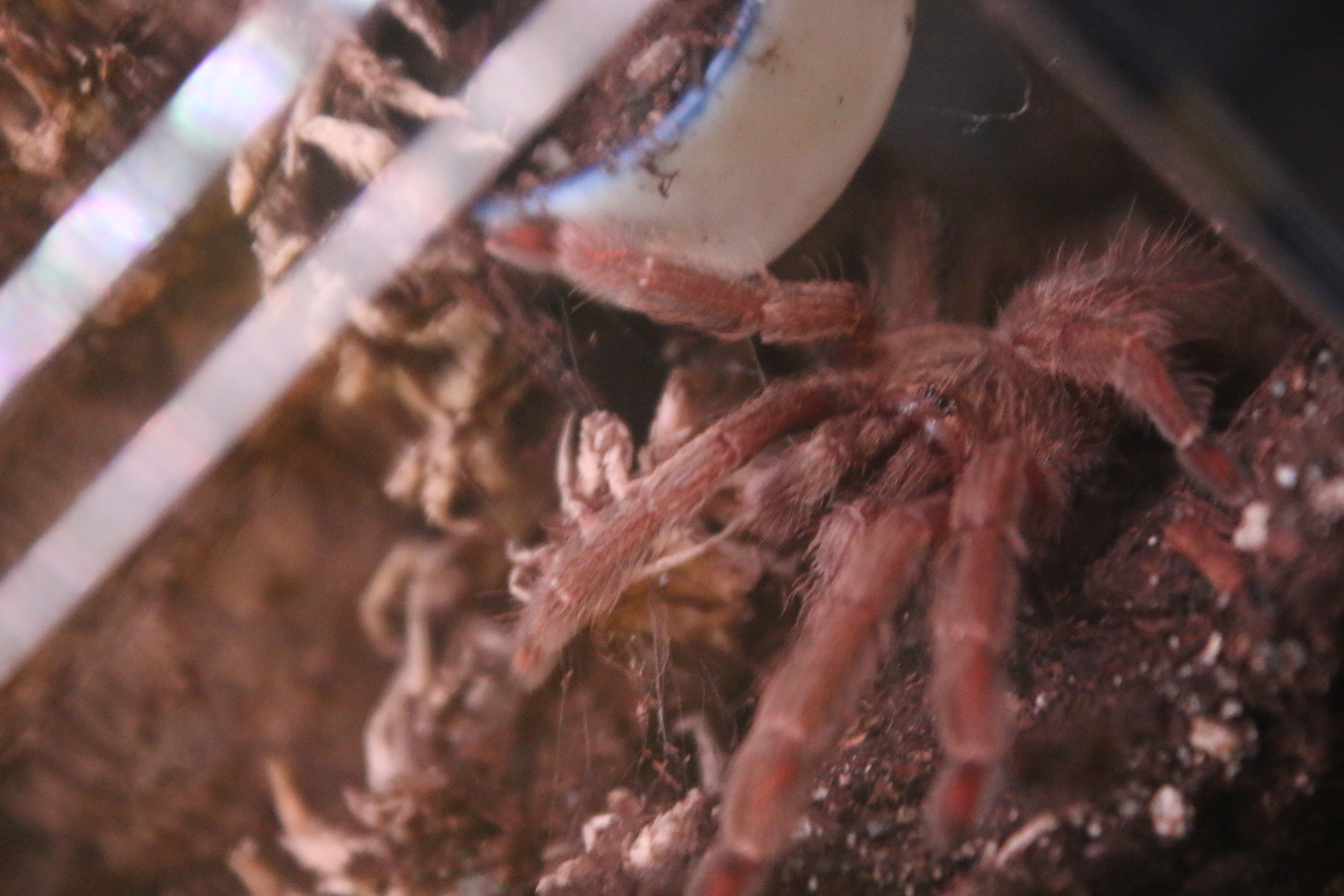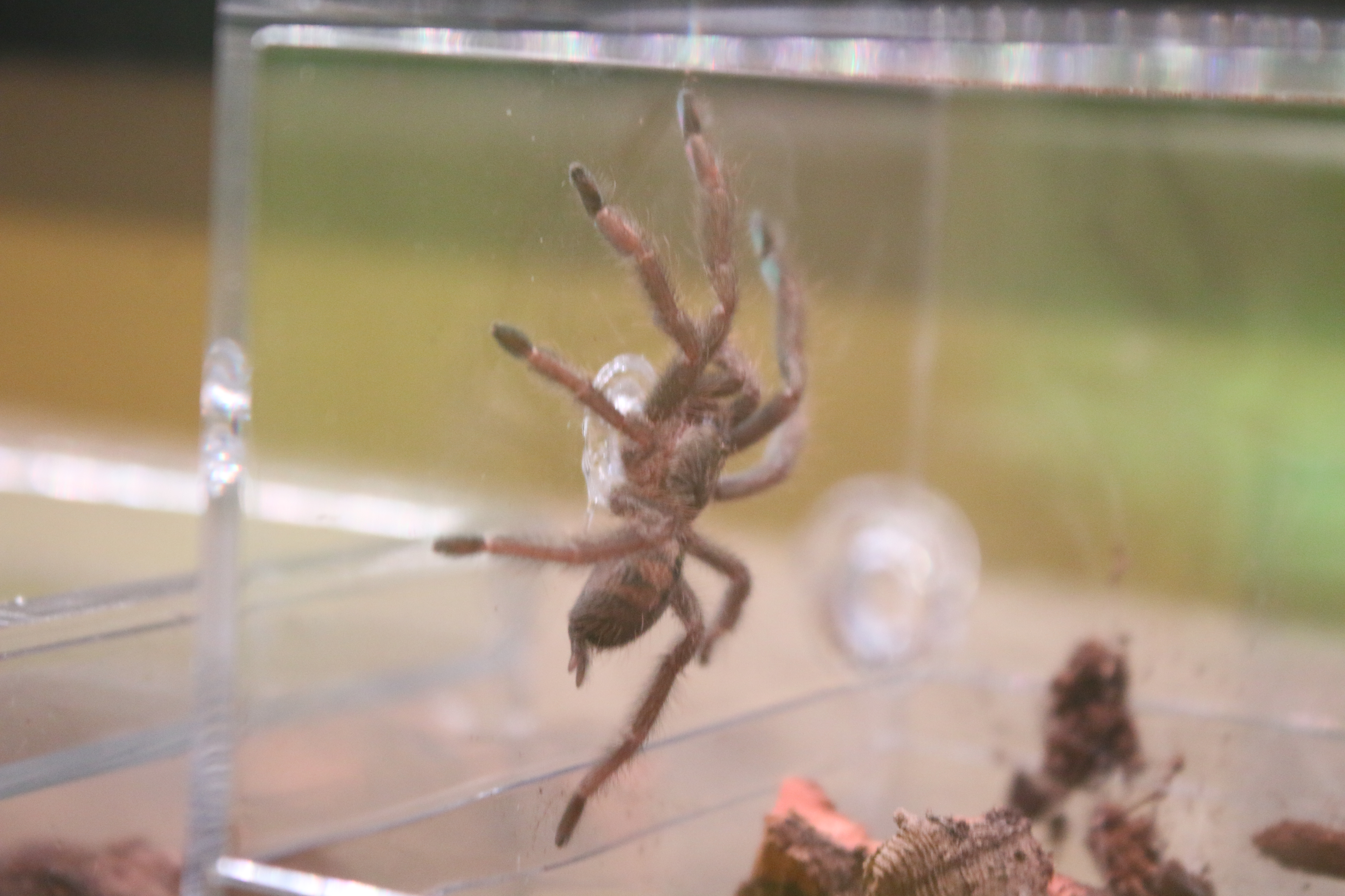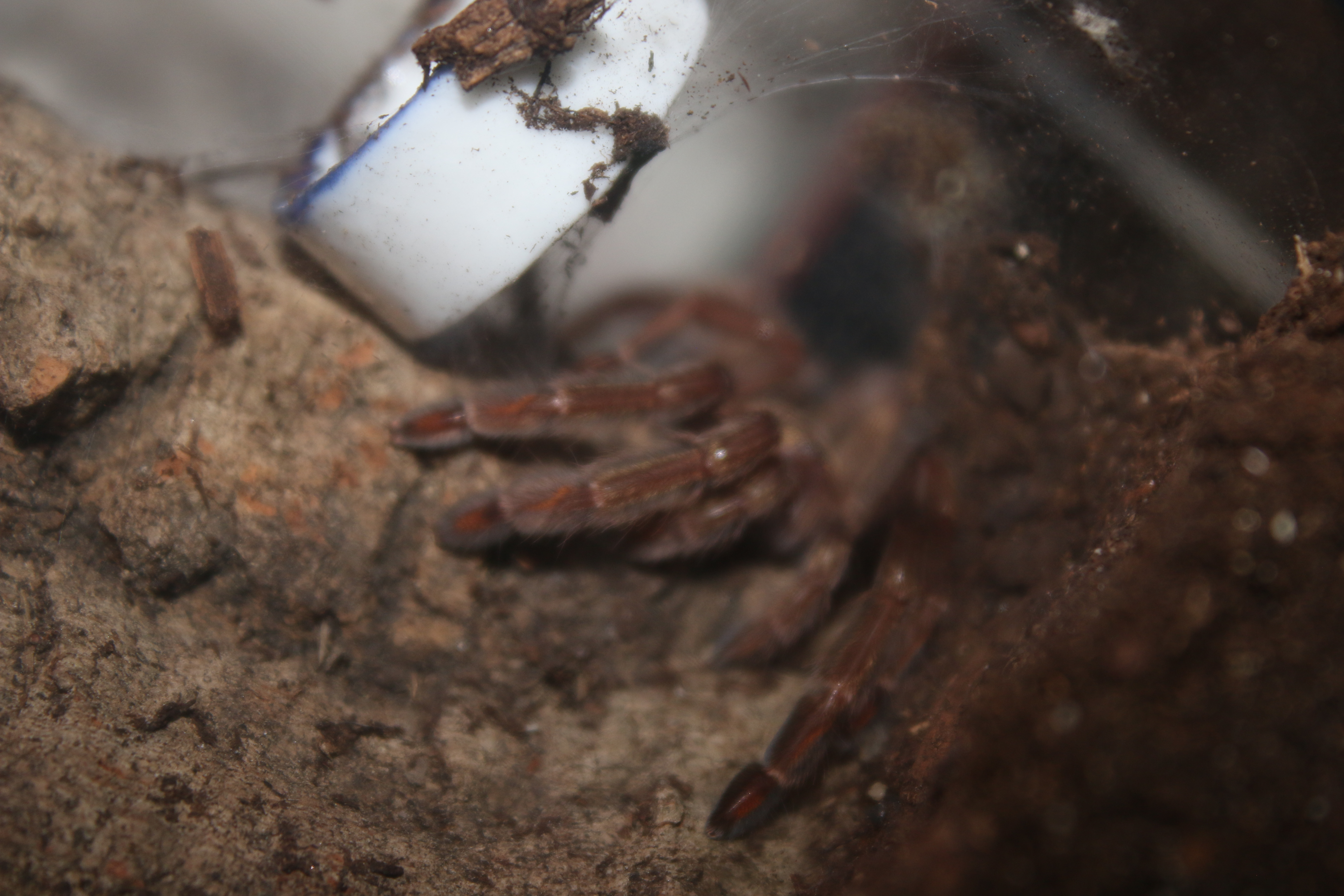Dog is a young Trinidad Chevron tarantula (Psalmopoeus cambridgei). Unsexed so far. I picked them up from an expo on May 18, 2024.