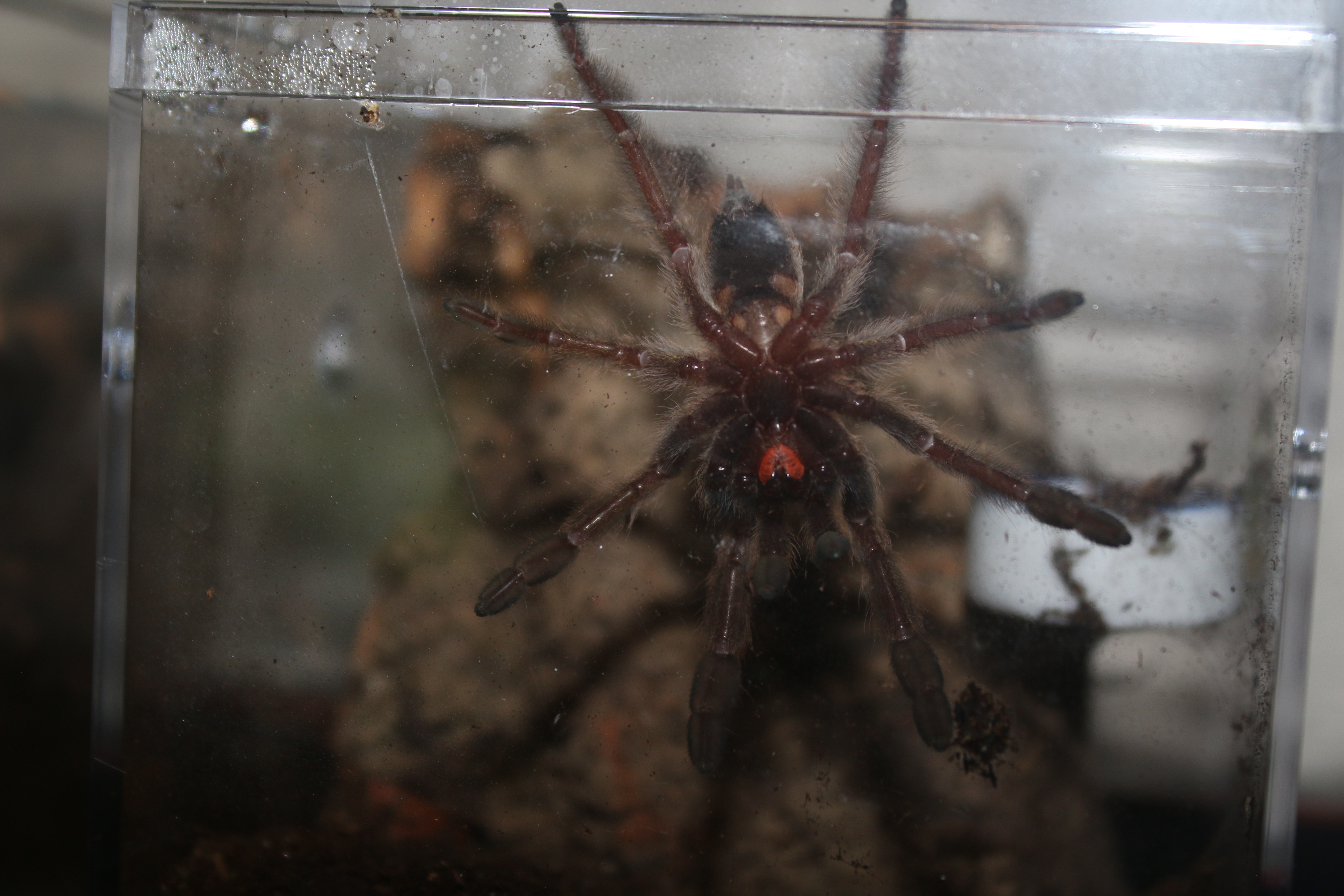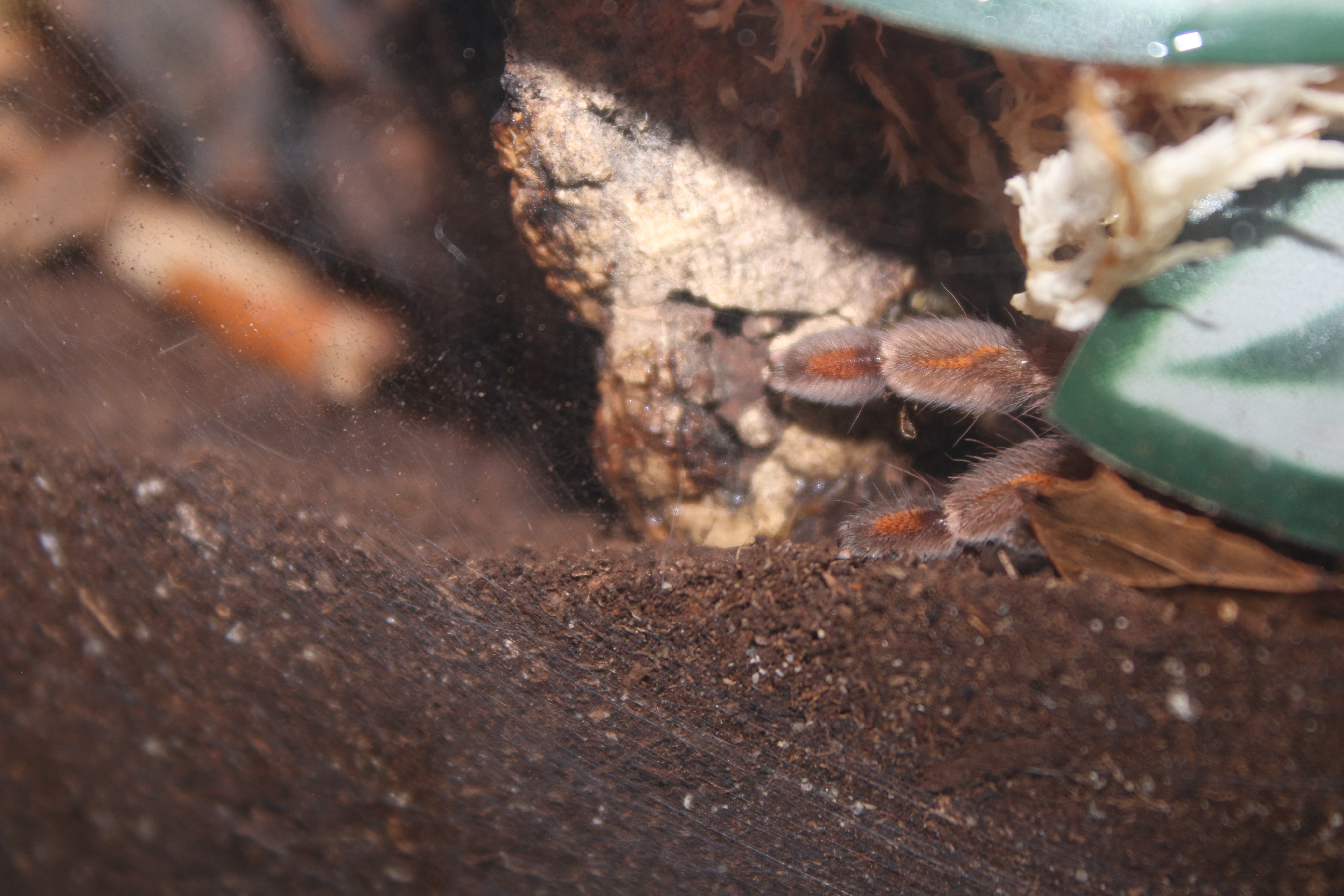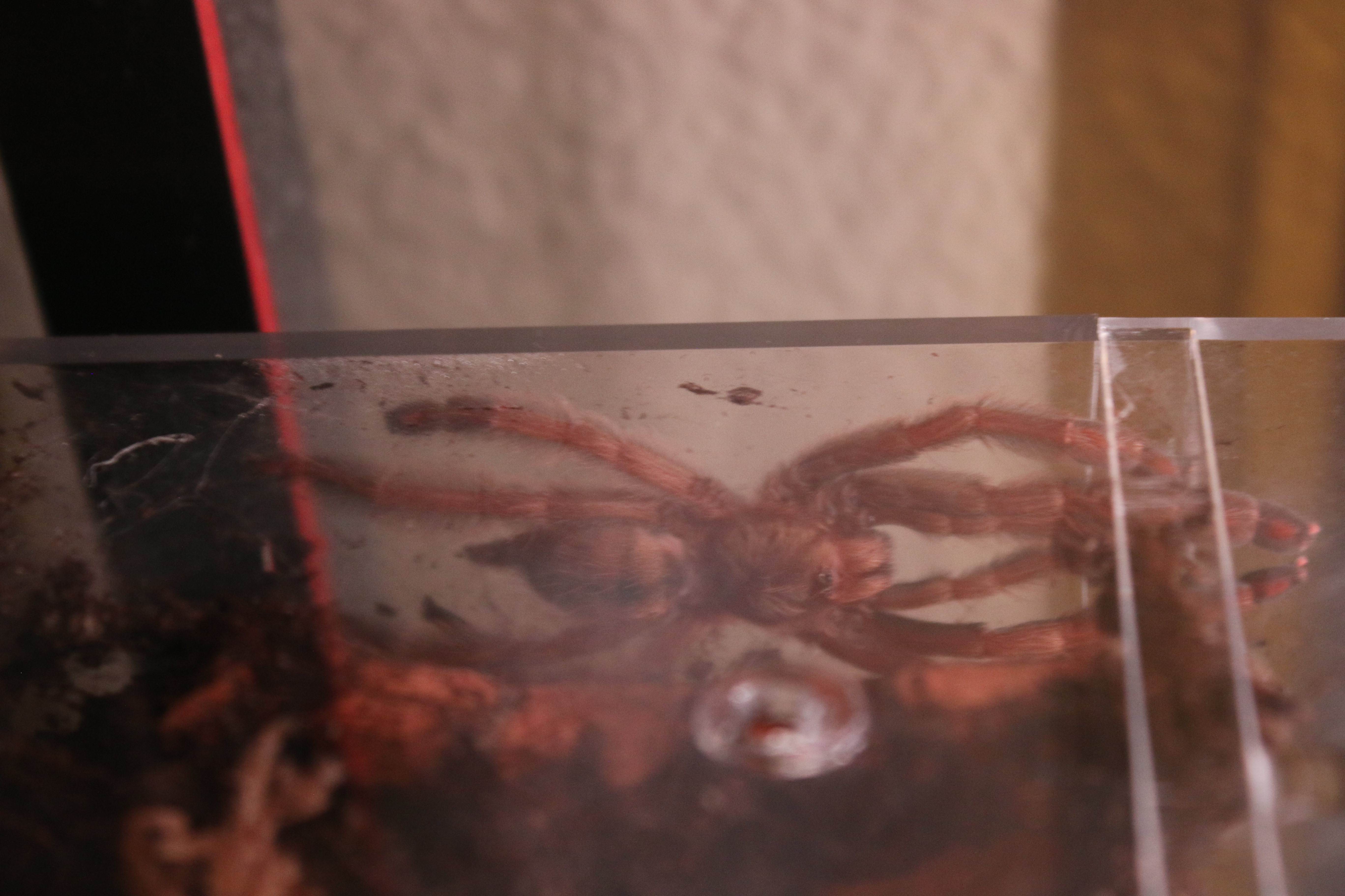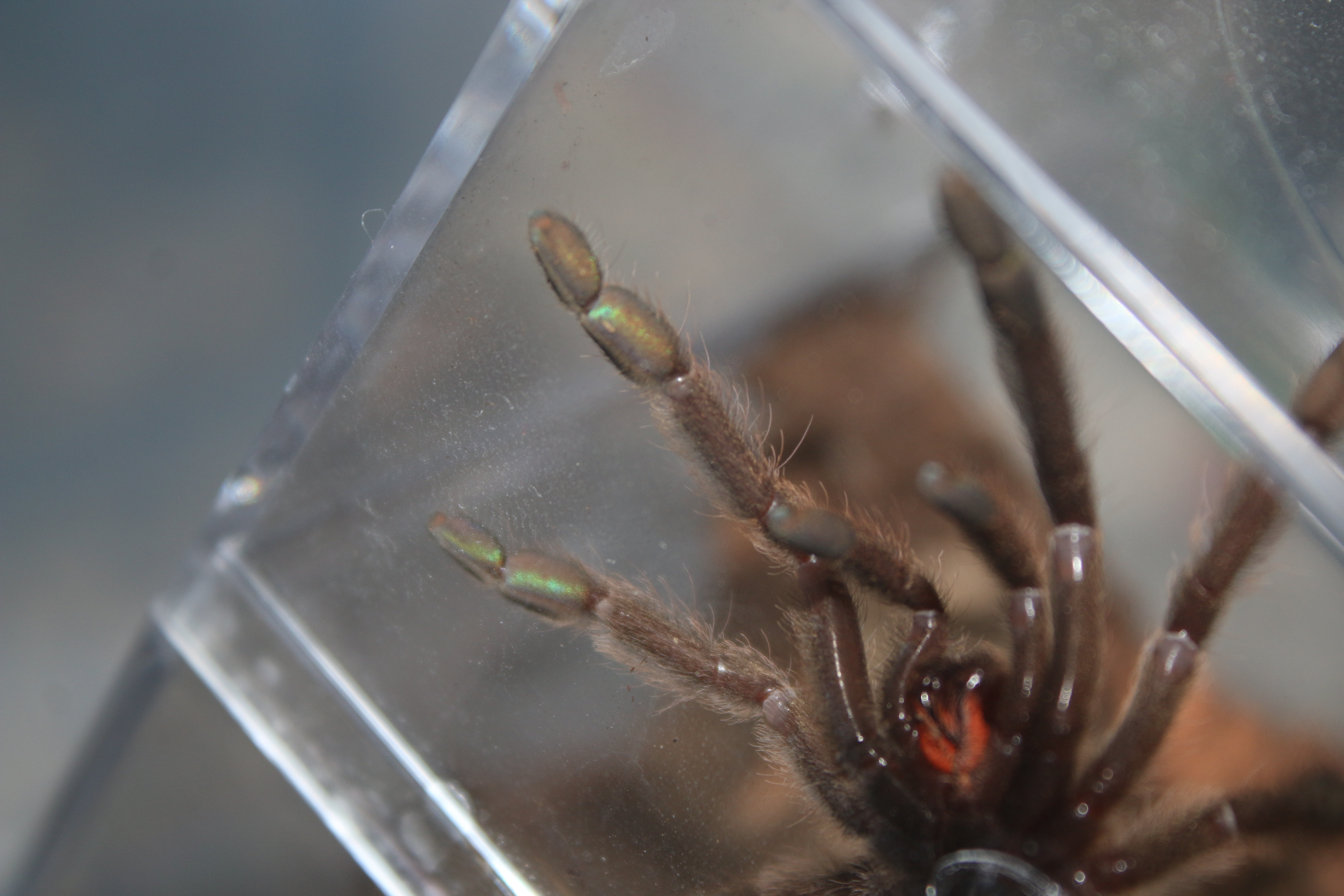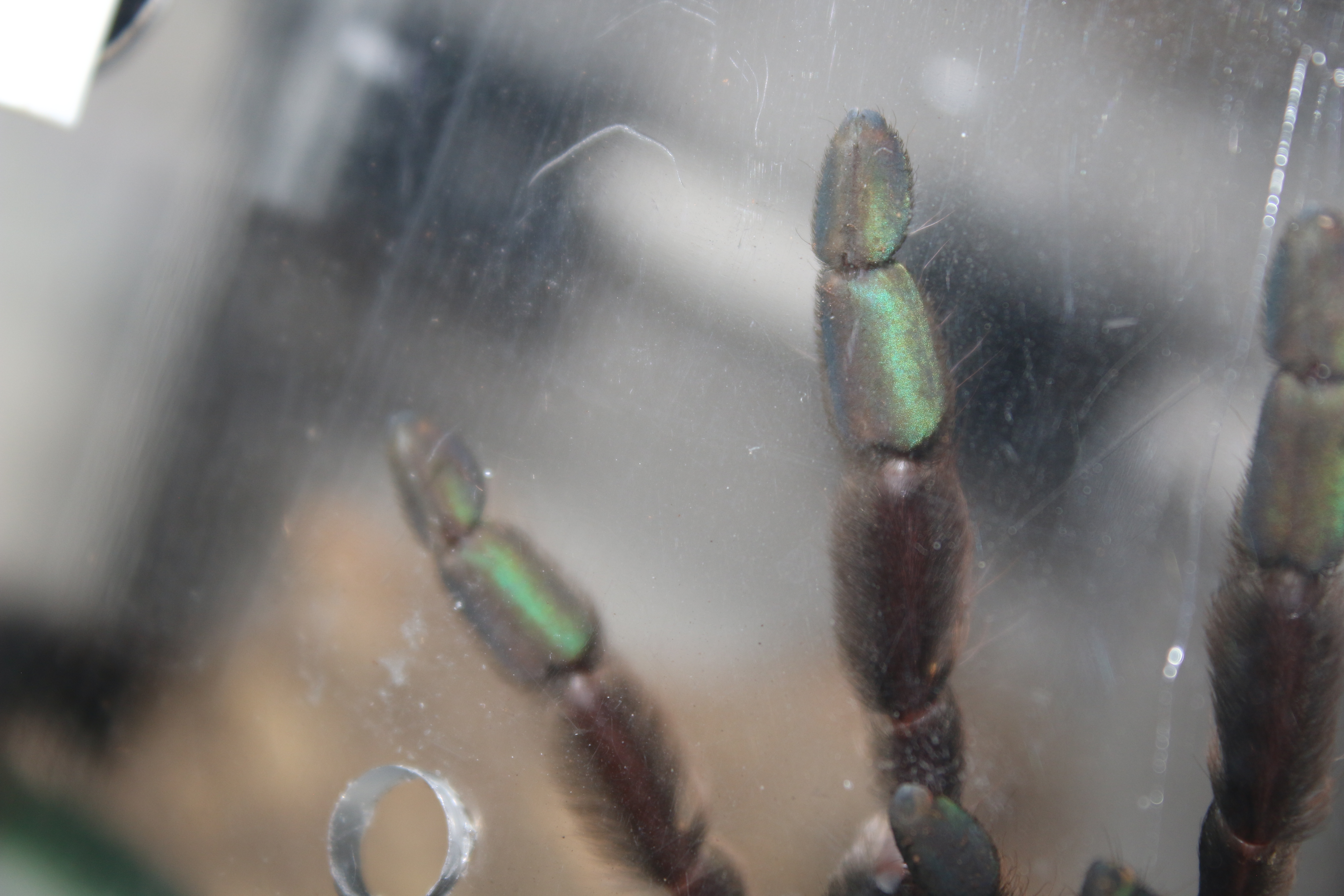 Dog is a young Trinidad Chevron tarantula (Psalmopoeus cambridgei). Unsexed so far. I picked them up from an expo on May 18, 2024.